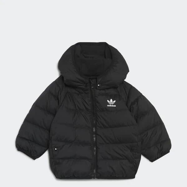 Is there anything better than a bundled baby? No, there really isn’t. So zip up your little one in this puffy down jacket and enjoy having the cosiest cutie on the block. A detachable hood lets you customise to fit their needs. A Trefoil logo stands out for a sporty look.This product is made with Primegreen, a series of high-performance recycled materials.