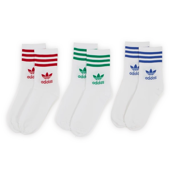 Adidas signe un indispensable du vestiaire ! Pariez sur un lot de trois paires de chaussettes mi-montantes et craquez pour le look intemporel des chausettes Mid Cut Crew. Leur design blanc est rehaussé par les éternelles bandes colorées sur la cheville. Retrouvez-les dans trois coloris indémodables : rouge, vert et bleu.