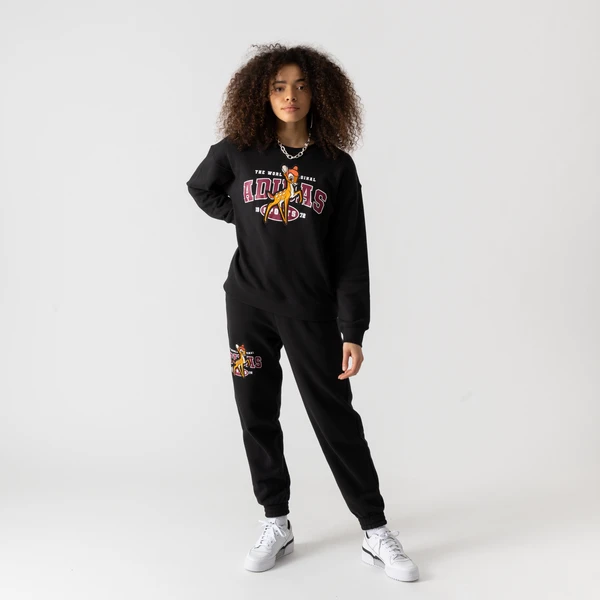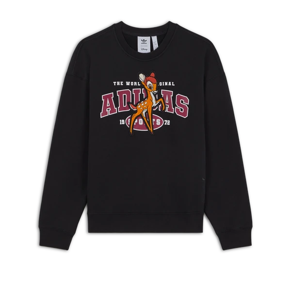 Craquez pour ce nouveau sweat-shirt au design vintage, fruit d’une collaboration iconique signé Adidas. Habillé d’un coloris intégralement noir, ce haut pour femme affiche l’emblématique personnage Disney Bambi. Par ailleurs, ultra doux et durable, ce sweat est confectionné dans un tissu en coton molletonné.