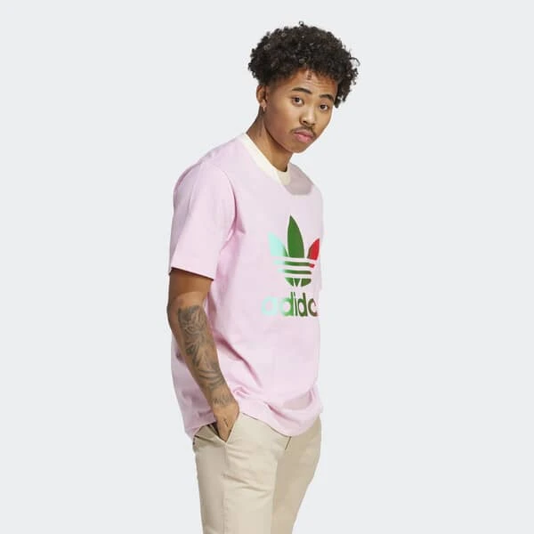 « Cette saison de la collection Adicolor 70s revisite des looks d’archive à travers une approche ultra moderne et non genrée. Indéniablement adidas, la collection est une leçon de contrastes : des tons vifs se mêlent à des nuances pastel tandis qu’un mix fun de matières luxueuses donne une nouvelle forme énergique aux silhouettes inspirées des 70’s. » — Les designers Originals, Lena Sophie Anders & Christina WitteInspiré de designs d’époque, le t-shirt premium Trèfle Adicolor 70s est un modèle décontracté qui représente bien la direction prise par la collection. Conçu en jersey épais et doux, il affiche une coupe moderne oversize. Le logo Trèfle est twisté avec un effet dégradé issu tout droit des archives. Il est doté d’un col côtelé premium de couleur contrastée qui atteste de ses racines rétro.