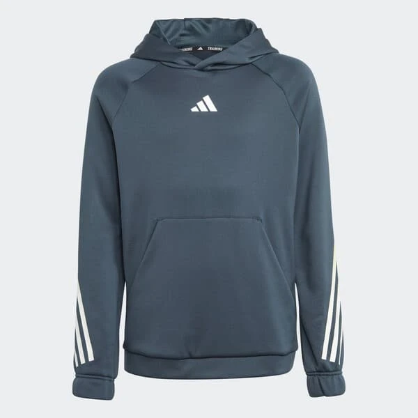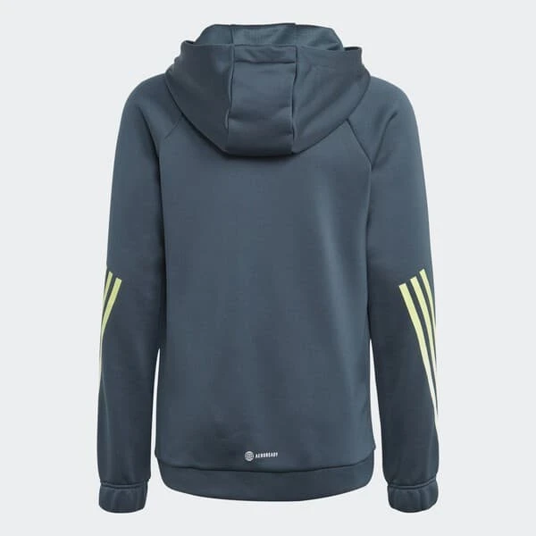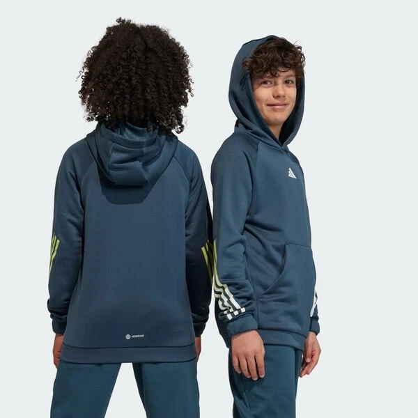 Échauffe-toi sur la piste ou récupère après l’entraînement tout en profitant d’un maximum de confort et de confiance en toi avec cette veste à capuche de training adidas junior. La technologie AEROREADY évacue la transpiration pour te garder au sec pendant les matchs improvisés du week-end. Les 3 bandes autour des manches affichent ta passion pour le sport.Conçu à partir de matériaux 100 % recyclés, ce produit ne constitue qu’une de nos solutions pour lutter contre les déchets plastiques.