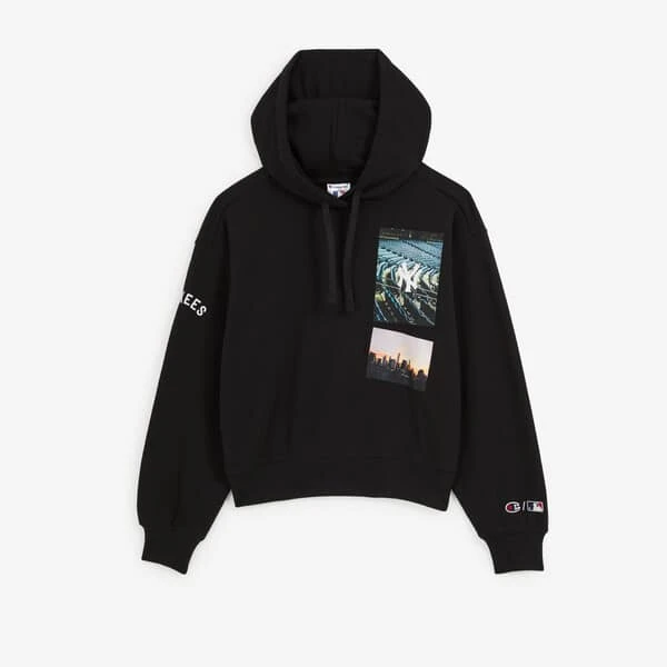 Le hoodie Champion Hoodie Picture NY est un hoodie à capuche noir avec un visuel graphique audacieux, en clin d’œil à New York. Vous craquerez pour ses ourlets resserrés, sa capuche réglable, et ses différents motifs parsemés sur le modèle.