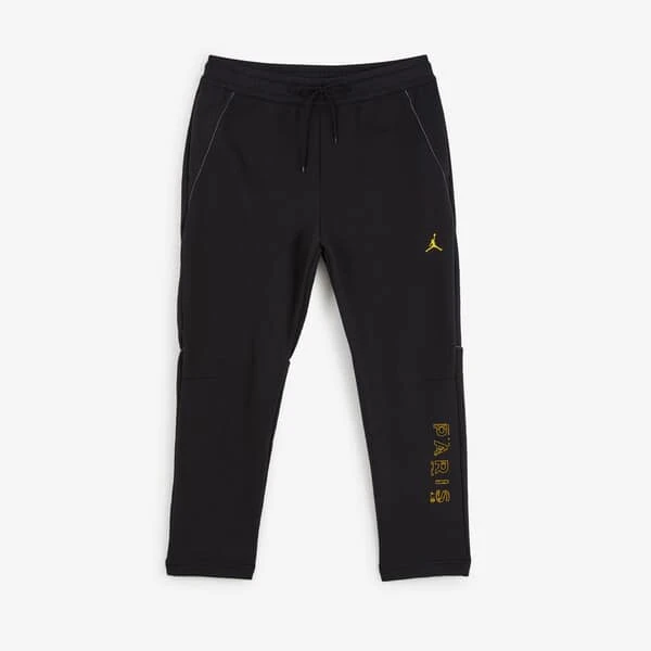 Le pantalon de jogging Pant Jogger PSG MJ par Jordan présente une coupe droite, ¾ et ajustée. Son textile respirant et ses poches forgent un design d’inspiration technique. Son design noir uni est rehaussé par des imprimés jaunes dans un esprit graphique, retrouvez le logo Jumpman et les lettres capitales de « Paris ».