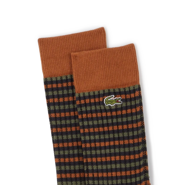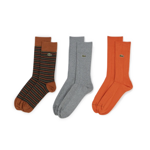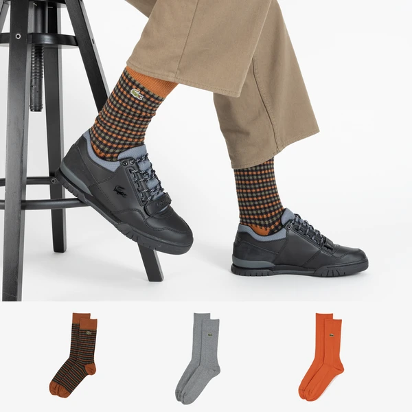 Le coffret de chaussettes Lacoste High Logo Lotx3 renferme trois paires montantes aux looks et coloris inédits. Optez pour le charme authentique et élégant d’une paire de chaussettes brunes à carreaux, ou préférez encore l’esprit graphique d’un modèle orange ultra pigmenté.
