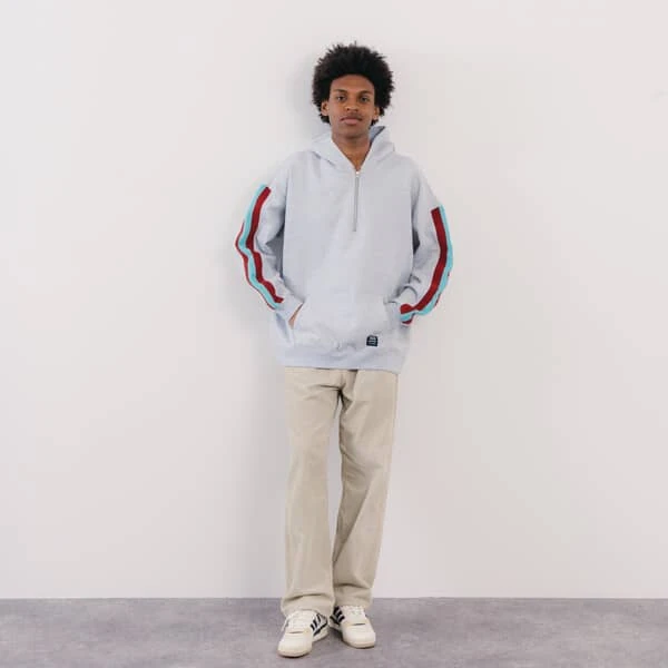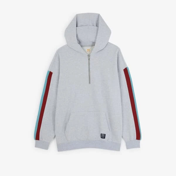 Ce hoodie signé Levis a tout pour plaire avec sa capuche, ses extrémités resserrées, sa poche centrale et son col à fermeture éclair pratique. Son atout tendance réside dans ses bandes bicolores qui s’étendent mi-bras jusqu’aux poignets.