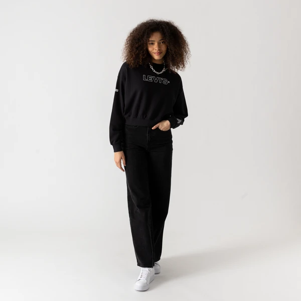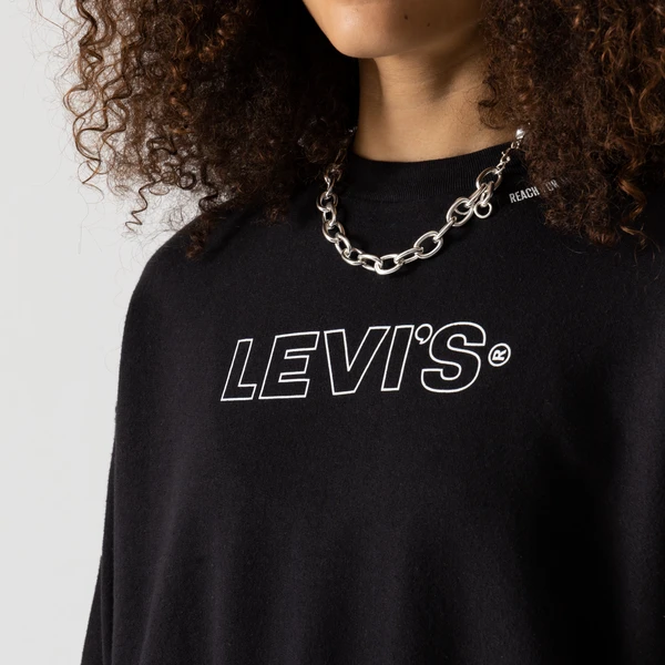 Soyez féminine en look urbain avec ce sweat signé Levis. Sa coupe droite et ses bords côtelés vous offrent un véritable confort, tout en vous conférant une allure actuelle. Son coloris noir intemporel affiche le wordmark Levis oversize.