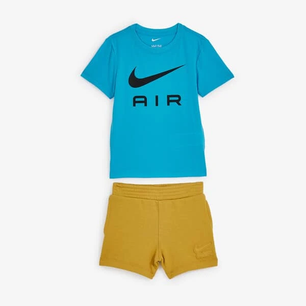 Nike dĂ©voile son ensemble deux piĂšces Ă destination de votre enfant. Dâinspiration sport, Nike propose un t-shirt avec logo central AIR et un short ajustable beige. Aussi agrĂ©able Ă porter Ă lâintĂ©rieur quâĂ lâextĂ©rieur, votre enfant restera toujours en tendance.