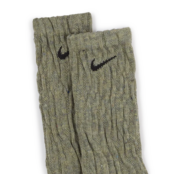 Pariez sur un lot de deux paires de chaussettes montantes et préférez la qualité durable d’un modèle signé Nike ! Les chaussettes Crew Cushioned présentent un look uni, gris ou vert, rehaussé par le petit swoosh noir sur la cheville. Craquez pour leur détail côtelé ondulé.