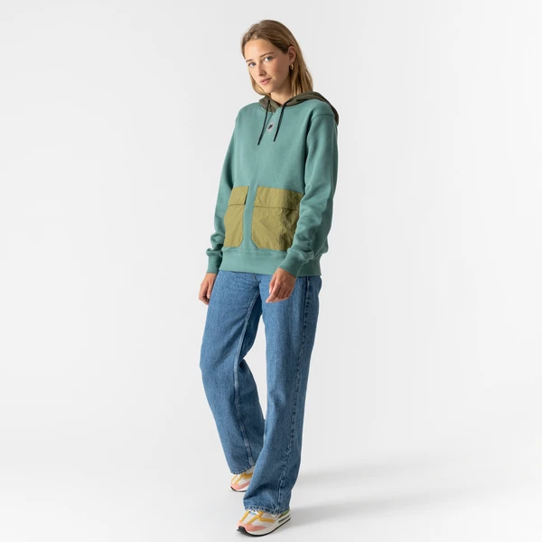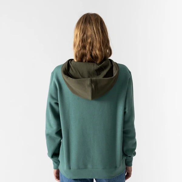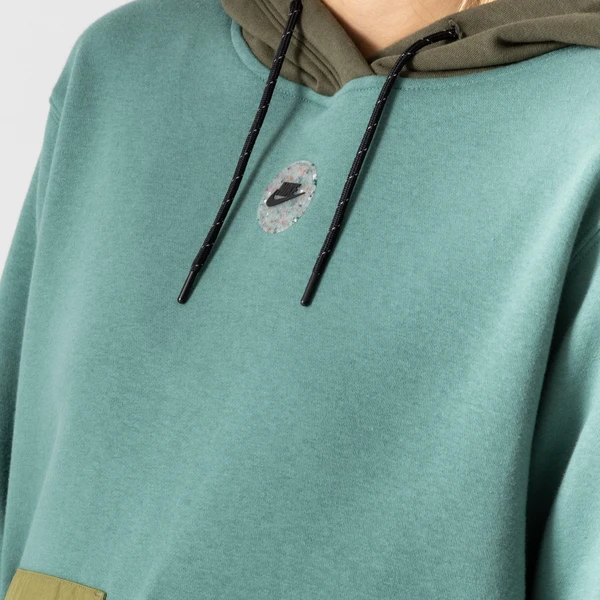 Le Hoodie Oversize Fleece présente un look vert rehaussé par sa capuche marron. Deux poches plaquées en textile contrastant recouvrent le ventre dans un style d’inspiration technique. Retrouvez le petit logo à virgule dans un patch moucheté semi-translucide sur l’avant.