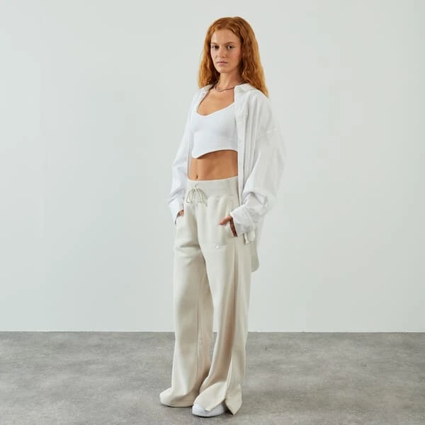 Laissez-vous charmer pour le style décontracté et confortable avec le Pant Jogger Wide Phoenix de Nike. Sa taille haute côtelée et son cordon de serrage oversize vous assurent un look qui se démarque. La coupe ample et longue ainsi que les ourlets fendus de ce pantalon de jogging vous permettent de mettre en valeur vos sneakers préférées.