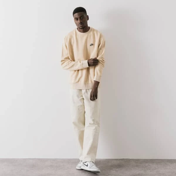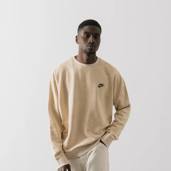 Nike présente son modèle Sweat Crew Club Revival. Sa teinte jaune unie est rehaussée par le logo signature de la marque, sur son côté droit. Constitué de matières recyclées, ce modèle ne fait cependant aucun compromis sur son esthétique.