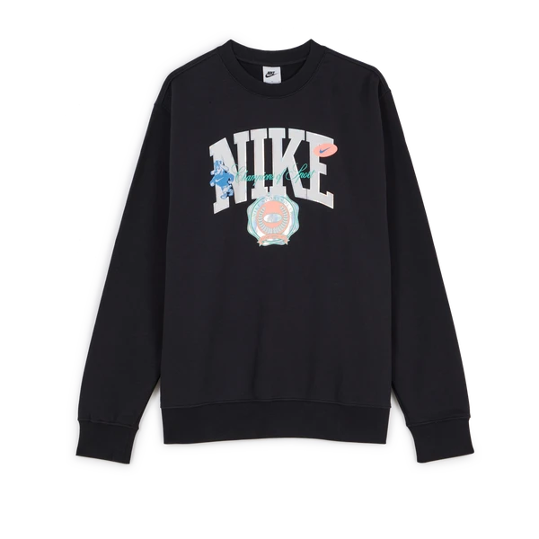 Le sweat-shirt Nike Sweat Crew Varsity présente un look noir décoré d’un imprimé grand format sur la poitrine. Les lettres capitales du logo Nike sont surmontées par divers brandings colorés d’inspiration vintage. Retrouvez notamment une mascotte sportive ainsi que le slogan « Champion of Sport ».