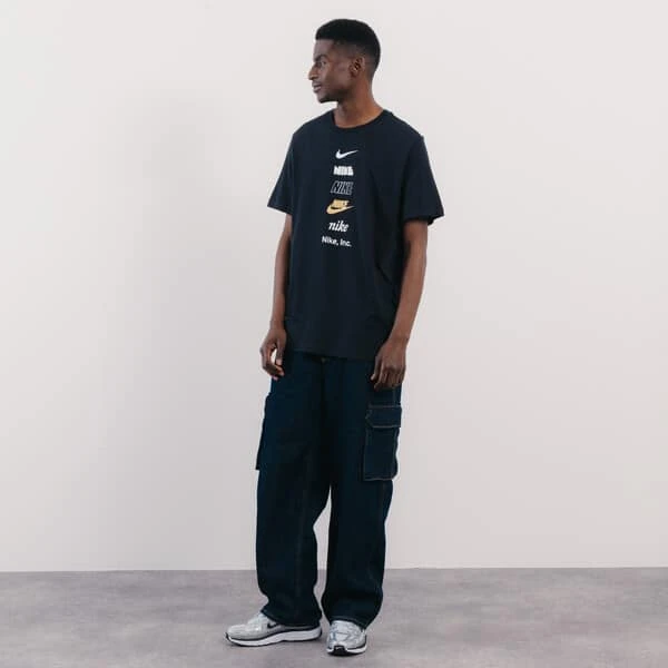 Ce modèle est fait en coton en gage de confort et de douceur. Son coloris noir est accompagné de plusieurs logos Nike imprimés sur l’avant du tee-shirt. Il apportera une touche unique et sobre à chacune de vos tenues?!