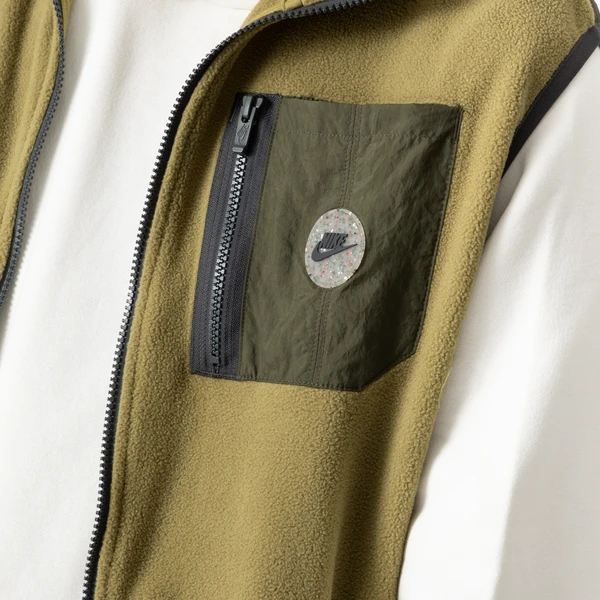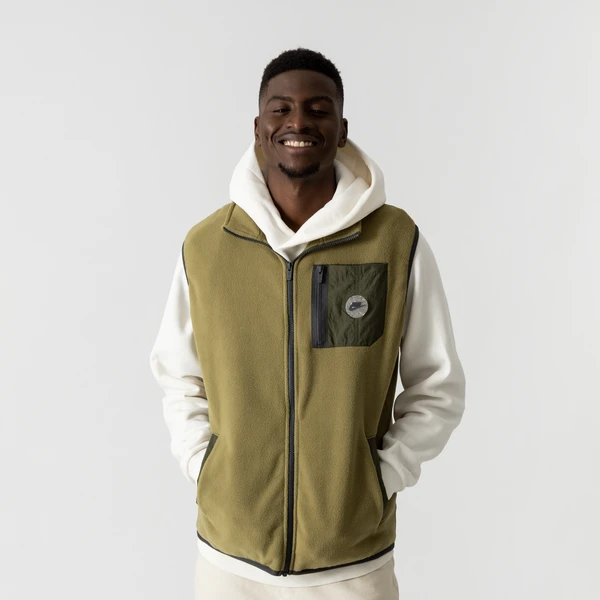 Renouez avec l’esprit technique et authentique d’un gilet sans manches ! La veste Nike Vest Gilet Polar présente un look vert kaki rehaussé par des éléments sombres et contrastants. Un petit patch semi-translucide moucheté revêt l’inimitable logo à virgule sur le cœur.