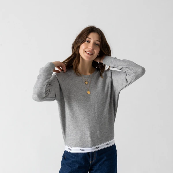 Ugg signe un sweat-shirt au design intemporel. Le Sweat Nena Logo Tape présente une coupe droite d’inspiration urbaine ainsi qu’un look gris chiné irrésistible. Le bas est structuré par une bande blanche monogrammée à l’effigie du célèbre logo Ugg.