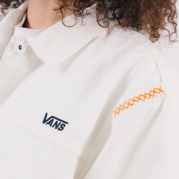 Une veste écrue à motifs floraux discrets, idéale pour une tenue légère et printanière. Résolument tendance, ce modèle vous séduira avec ses manches longues, ses deux poches avant, son logo signature VANS au niveau de la poitrine et sa coupe droite.